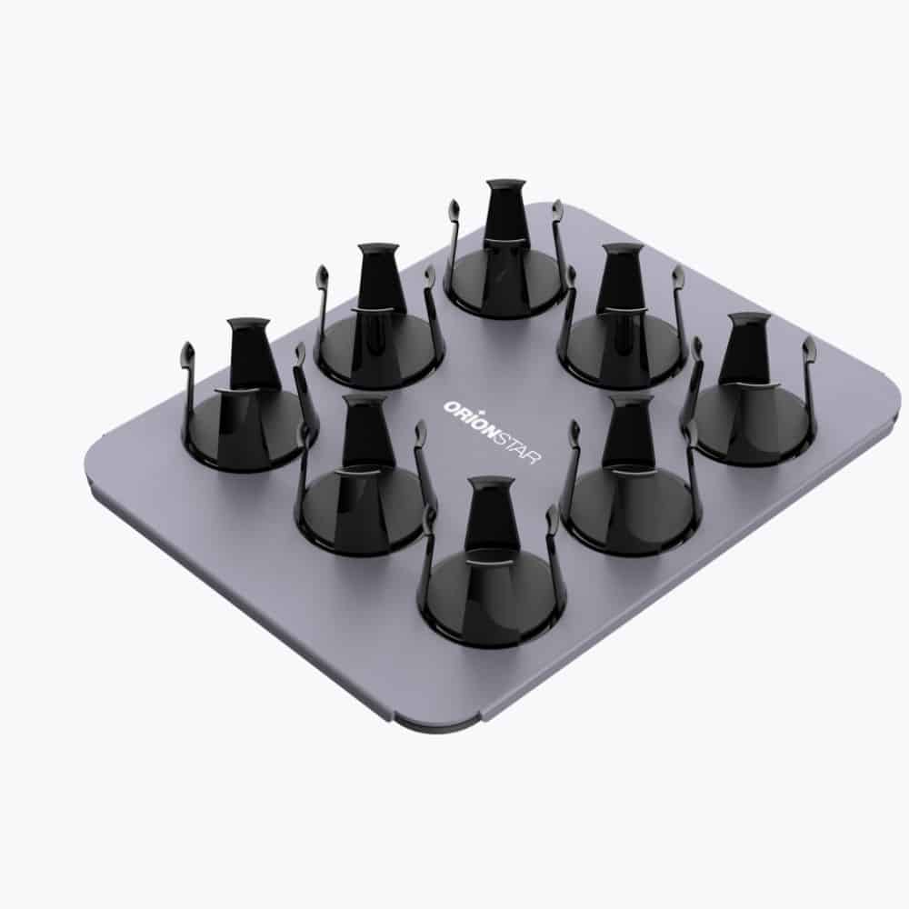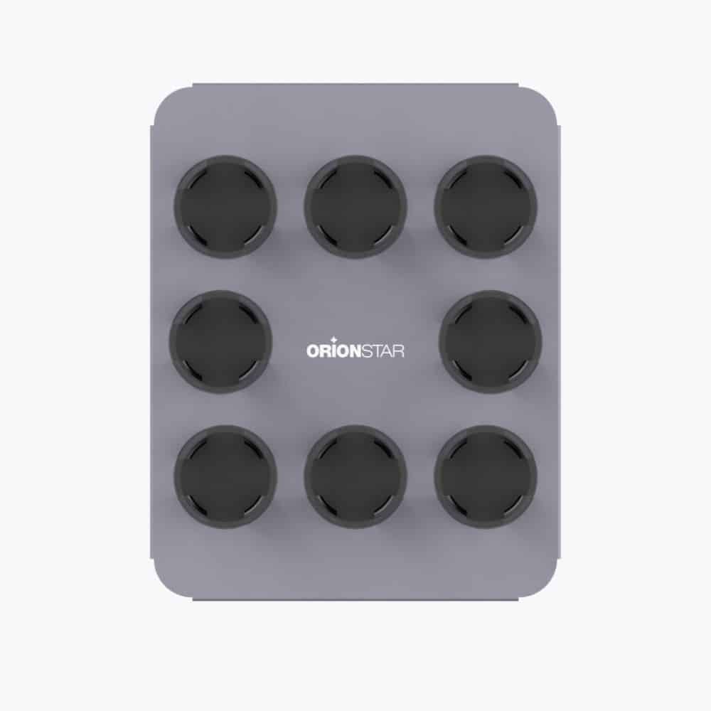Le porte‑gobelet se fixe directement sur le plateau du robot OrionStar. Sa forme circulaire épouse parfaitement les gobelets ronds, assurant :